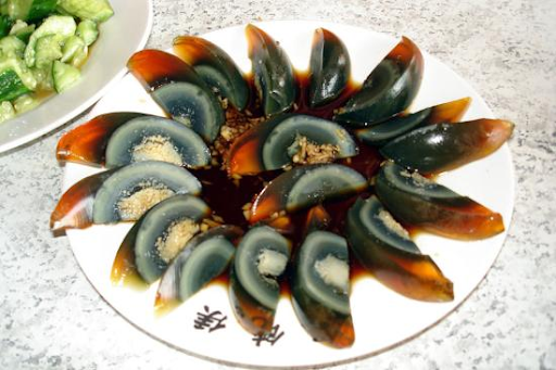 Prato típico da China, o ovo é envolto em cal e pasta de arroz e aí é enterrado num buraco por 100 dias. E Gilberto Freyre dizia que a China dominaria o mundo pela culinária.