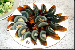 Prato típico da China, o ovo é envolto em cal e pasta de arroz e aí é enterrado num buraco por 100 dias. E Gilberto Freyre dizia que a China dominaria o mundo pela culinária.